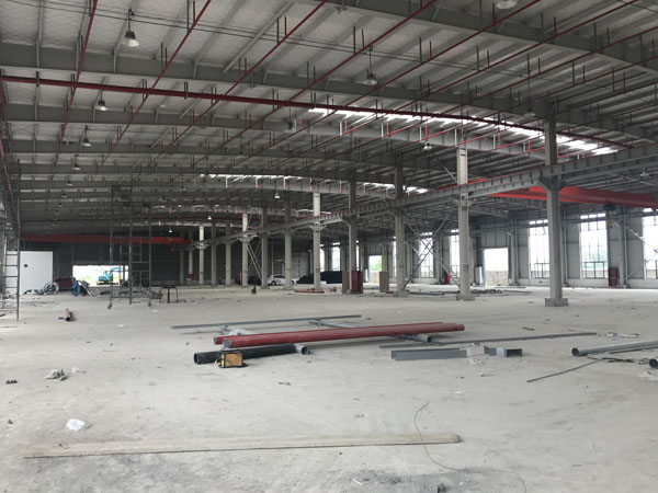 一车间外墙、门窗也已经安装到位,就差办公区的玻璃幕墙了。